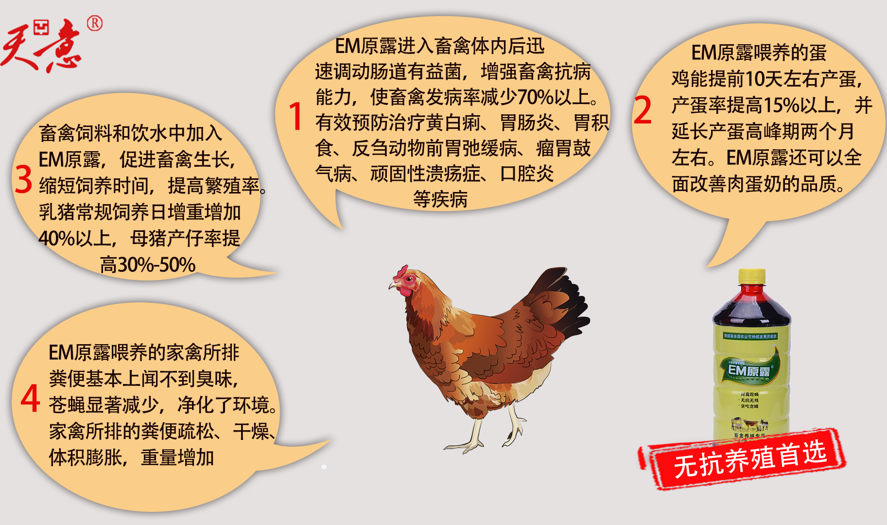 1995年初,天意集團創(chuàng)始人與團中央有關單位及中國農(nóng)大教授合作成立北京億安微生物工程有限公司,同時與中國農(nóng)大教授們在北京周邊地區(qū)開展EM技術種養(yǎng)試驗,獲得滿意效果后注冊“EM原露”商標,確立日本EM技術在中國的商品名稱。